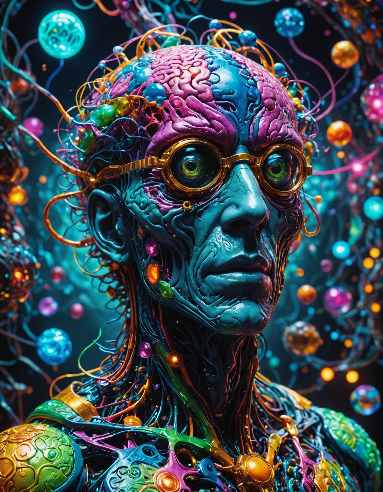 alchemist's potion-enhanced goggles, brain structure, psychopharmacology, subconscious mind, synaptic plasticity, pensive,computational,happy, insanely detailed, rich deep moody colors, Vibrant Colours, a masterpiece, _, <lora:SDXLFaeTastic2400:0.8>