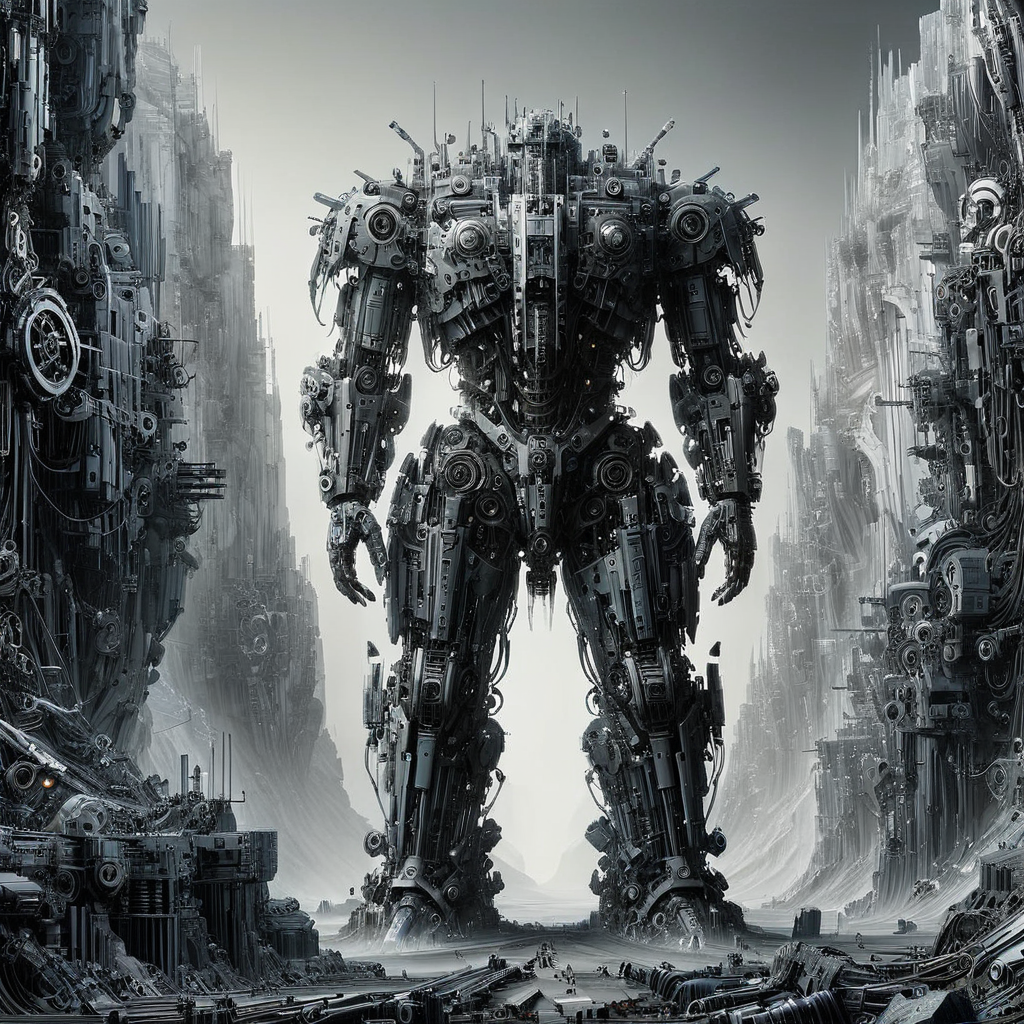 Photo of a massive mech standing at the edge of a chasm, guarding an entrance to the unknown. Convey a sense of mystery and danger, with the mechanical guardian serving as a formidable obstacle for those daring to venture into the abyss. , <lora:add-detail-xl:1> , <lora:RMSDXL_Enhance:1> , <lora:Mech_Dystopia_Style_SDXL:1>
