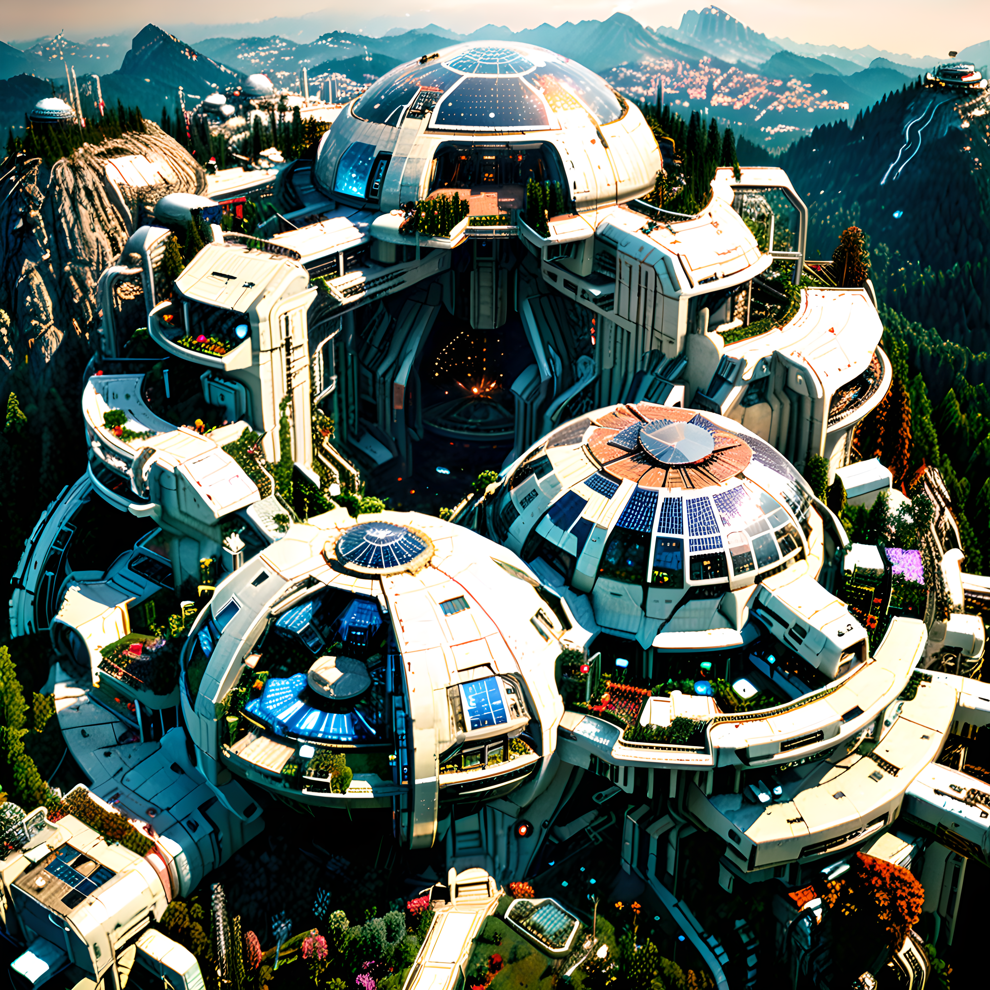 8k,hdr, hyperdetailed, hyperdetailed,1980 futuristic space city built under a space dome,ultra design houses whith gardens,moutains and forest at far distance,very wide shot angle,nostromostyleai, <lora:NostromoStyleAIv2:1> <lora:add-detail-xl:1> <lora:xl_more_art-full_v1:1>