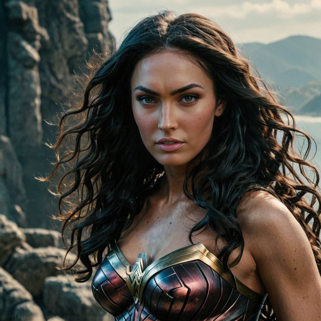 Hyperrealistic art photo of a woman as wonder woman, fierce, looking at viewer, at Themyscira, <lora:megfox_xl_1_standard_merger_23_41_07_03:1> . Extremely high-resolution details, photographic, realism pushed to extreme, fine texture, incredibly lifelike