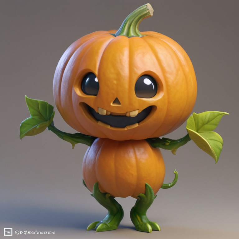 An anthropomorphic, dancing, kawaii pumpkin plant, super cute, super detailed, cgsociety contest winner, high resolution