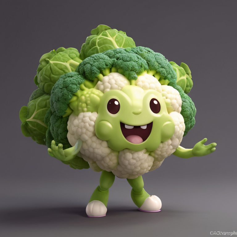 An anthropomorphic, dancing, kawaii cauliflower, super cute, super detailed, cgsociety contest winner, high resolution