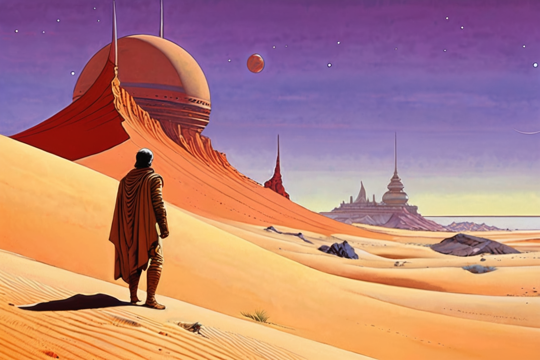 dune by frank herbert, in the style of moebius (jean giraud) <lora:add-detail-xl:1> <lora:aesthetic:1> <lora:Moebius (Jean Giraud) Style:1>