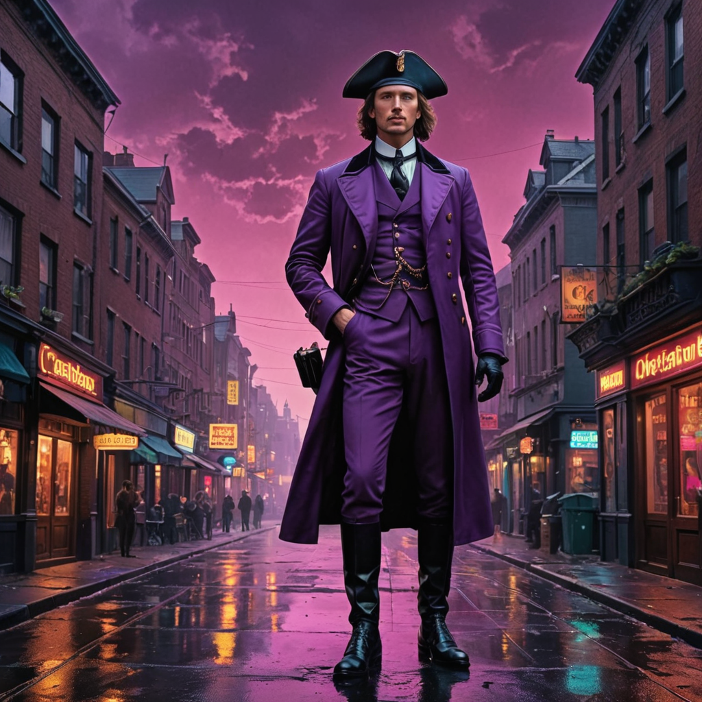 ((Fantasy-themed, fantasy art, swift brush strokes)), (Pulp:0.9), ((Dark and grim colors and mood)), embossed in metal (Victorian Gothic Art:1.3),(Dark hue:1.3) A captain, depicted as a stout and jovial figure, dressed in a simple tunic and hose. His demeanor is jovial and affable, with a hearty laugh that belies his formidable reputation. panoramic Delta unfavourable weather Wes Anderson, Thomas Barbey, Jan van Eyck neonpunk style . cyberpunk, vaporwave, neon, vibes, vibrant, stunningly beautiful, crisp, detailed, sleek, ultramodern, magenta highlights, dark purple shadows, high contrast, cinematic, ultra detailed, intricate, professional