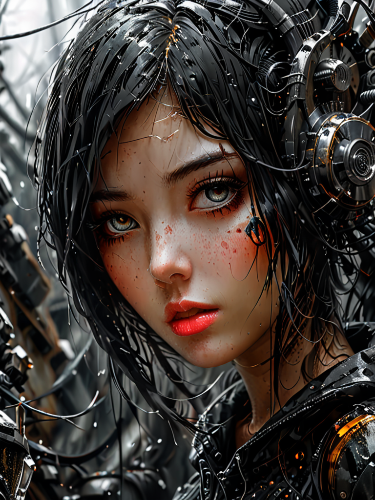 impactful image of dystopic image of a woman, (sad), <lora:Dystopia:0.9>, highly detailed, 8k, sharp, professional, clear, high contrast, high saturated, vivid deep blacks, crystal clear