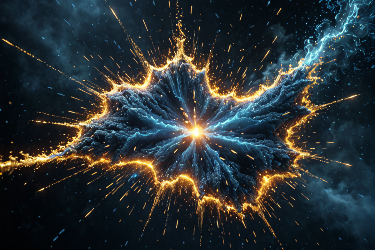 Movie still. Gold dataviz volumetric caustics, sparkling magical plasma aura, inside volumetric dark blue mist, scattered fire particles, stars, point cloud, luminous light effects, <lora:xl_more_art-full_v1:0.5> <lora:add-detail-xl:0.5>