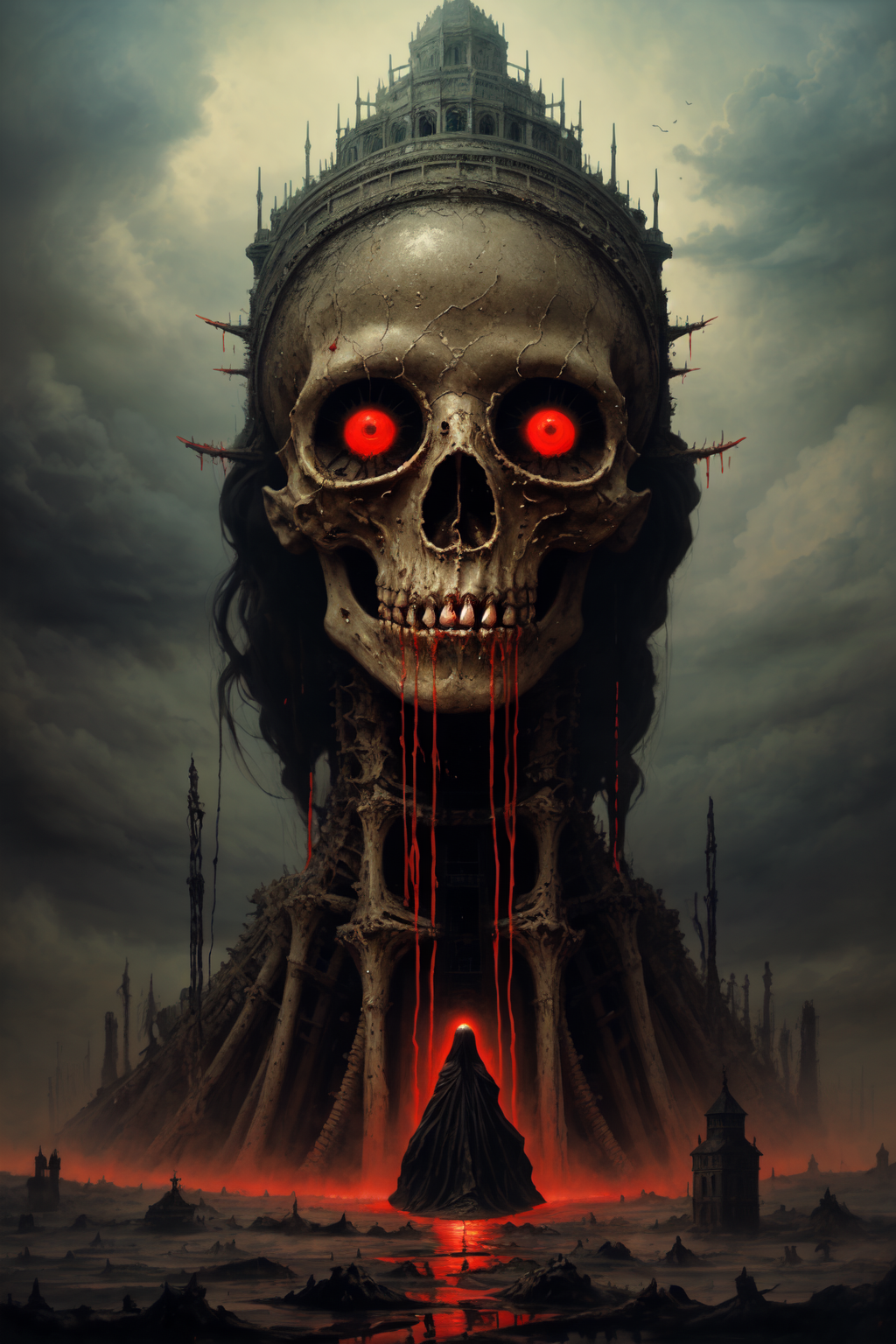 (best quality, masterpiece, high resolution:1.2),Embark on a journey into the surreal and absurd with an oil painting depicting a girl intricately building a (giant creepy tower for God from human bodies,bones, flesh and vessels:1.3). The composition explores the boundaries of reality, creating a visually arresting scene that defies conventional norms,the tower reaches into the sky, Dive into the eerie and thought-provoking atmosphere as the surreal narrative unfolds in this captivating and unsettling artwork,absurdes,surreal,impressionism, naked,elegant,Weird, creepy, disturbing,dreamlike, nightmarish, unsettling,(focus on girl:1.4),surrounded,(crowd of disciples:1.25),vast, scenery,dystopia,bones,flesh,praying,glowing,detailed,epic,gloomy,grim,giger,beksinski,blood,decrepit,cloud,blood rain,red sky, captivating oil painting,cinematic, breathtaking details, dry brush art,noticeable brushstrokes,oil on canvas,detailed,horror \(theme\),nsfw,uncensored,suspenseful,poignant atmosphere, hauntingly captivating,(Otomo Katsuhiro:0.5),(Art Nouveau:0.2),Post-War Reconstruction, light particles, atmospheric, gritty, melancholy,dissonant,tormented, faded elegance,bloodcurdling,cryptic,(close-up:1.4), ( zoomed:1.4),forced perspective,horizon line,deep horizon,in the center of blood ocean, centered, blood flows, blood everywhere, foggy, hell, <lora:BearlySD:0.7> <lora:backlight_slider_v10:1> <lora:H.R.Giger_ArtStyle_640x960:0.1>