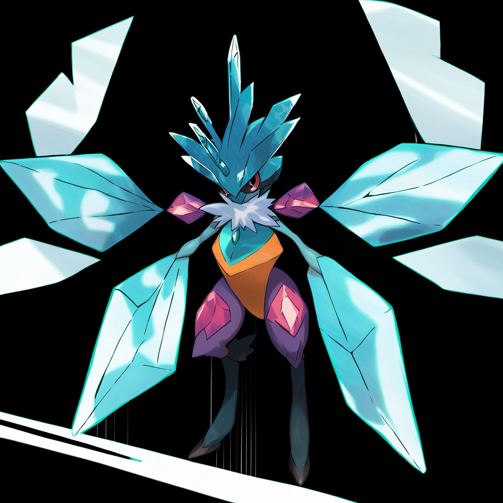<lora:pokemon_pony_xl:0.7>, Type: Ground, Type: Ice Egg Group: Ditto The animal's mane can stand on end, each hair ending in a Magenta tip that can conduct Bug energy.,The monster's lower jaw is detachable, allowing it to consume large prey items with ease,Its hind limbs contain pockets of Fire gas, enabling brief bouts of flight,Its veins pulse with a Cyan light visible beneath its translucent skin a map of its life force,Its hide is patterned with Magenta swirls that shift slowly, mesmerizing anyone who gazes upon them.,It possesses a retractable yellow (orange:0.8) crest that it raises to intimidate opponents or to signal its readiness for battle,The creature's yawn releases a Indigo fog, known to induce sleepiness in those who inhale it.,The monster's breath can crystallize into Black shards in cold temperatures, creating a dazzling but dangerous display.,The monster's wings beat silently but leave a trail of Green sparkles that linger in the air,On its chest is a gemstone that absorbs sunlight and converts it into energy, score_9, score_8_up, score_7_up, score_6_up, score_5_up, score_4_up. Simple black background, (Masterpiece:1.3) (best quality:1.2) (high quality:1.1)