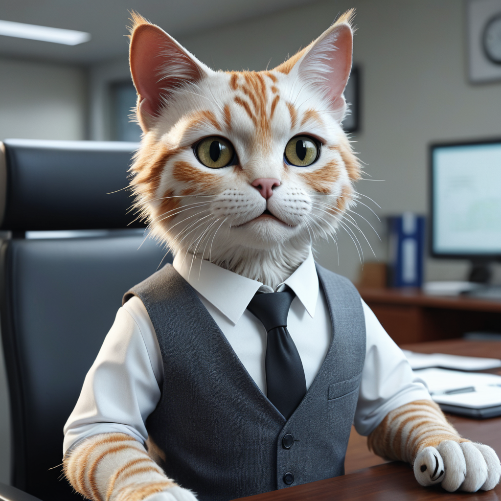 a humanoid cat, in a office, 8k, extremely detailled,