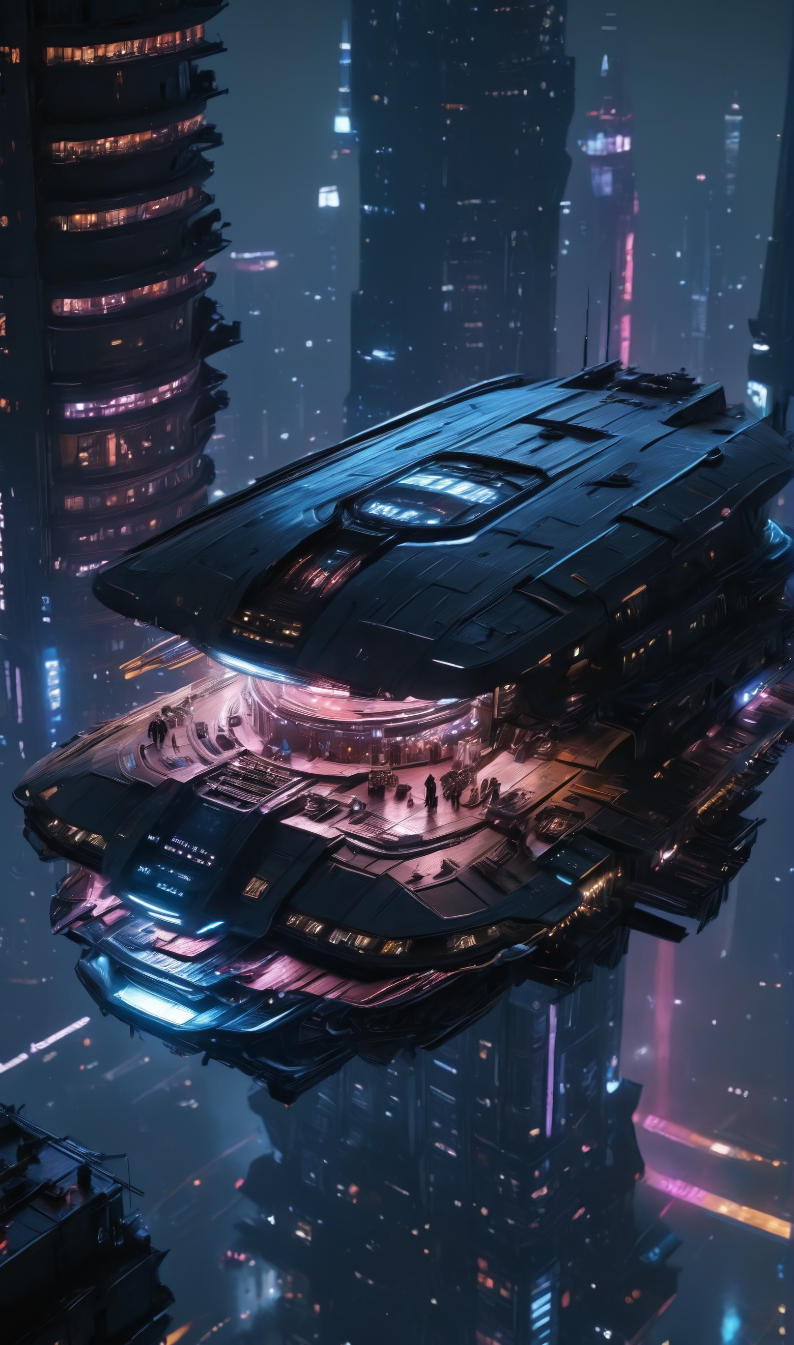 top view of a huge cyberpunk ziggurat skyscraper with open roof, people on the roof, spacecraft approaching, vast megacity of the future, neon lighting, night, rain, stars in the sky, 8k, detailed, realistic, cinematic, (high resolution, photorealistic, sharp:1.4), dutch angle, wide lens <lora:add-detail-xl:1> <lora:detailed_notrigger:1> <lora:light:1> <lora:SpaceCraft_XL:1> <lora:glowneon_xl_v1:1> <lora:JuggerCineXL2:1>