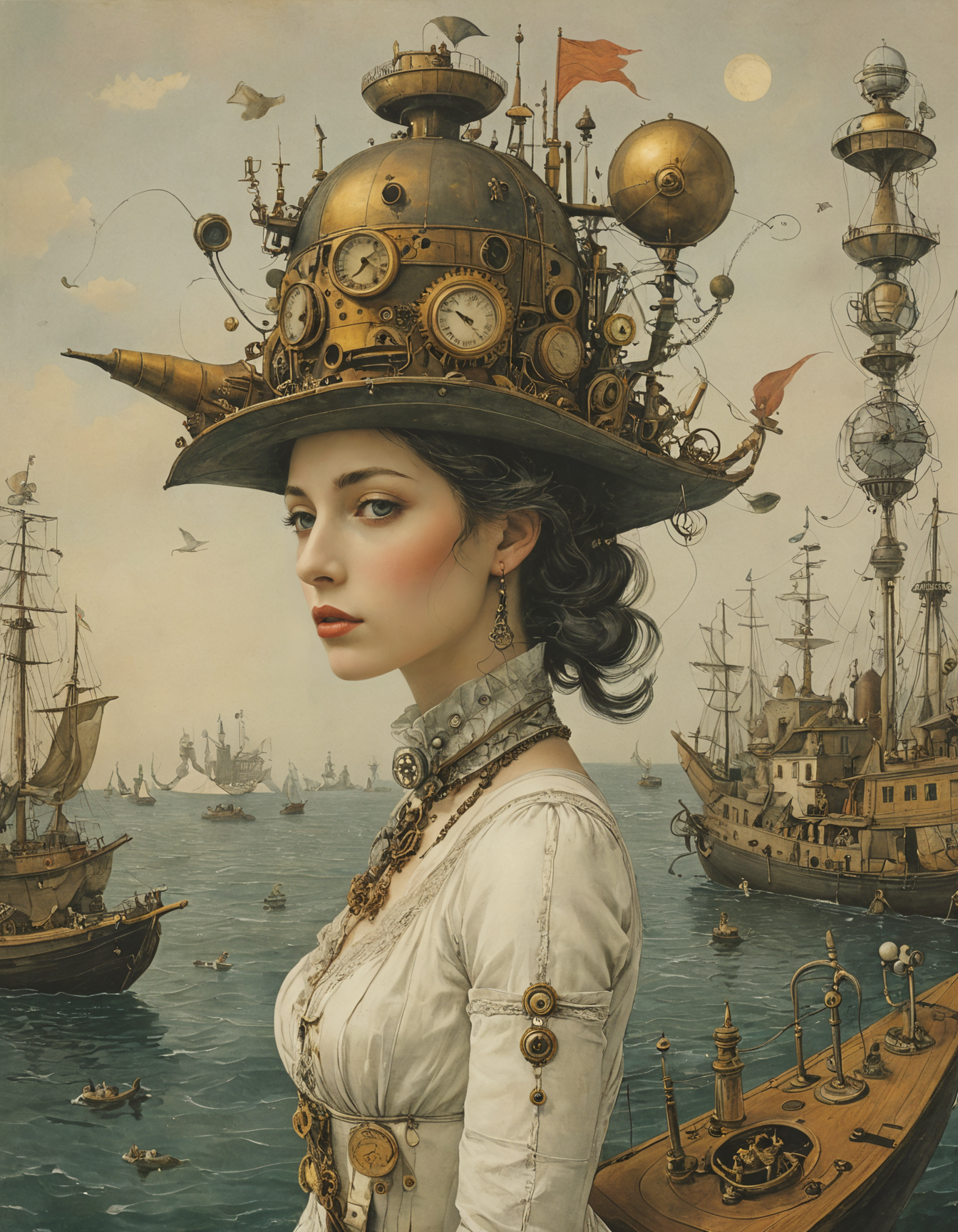 ([by Saul Steinberg|by Canaletto]:1.5), (The Sirens, a hauntingly beautiful songtresses, irresistible, alluring, luring sailors to their doom with their melodic voices. Their melodic voices are enchanting and mystical, capturing the essence of this surreal world.:0.5) (Steampunk:1.3) <lora:xl_more_art-full_v1:0.5> <lora:add-detail-xl:0.7> <lora:MJ52:0.4>