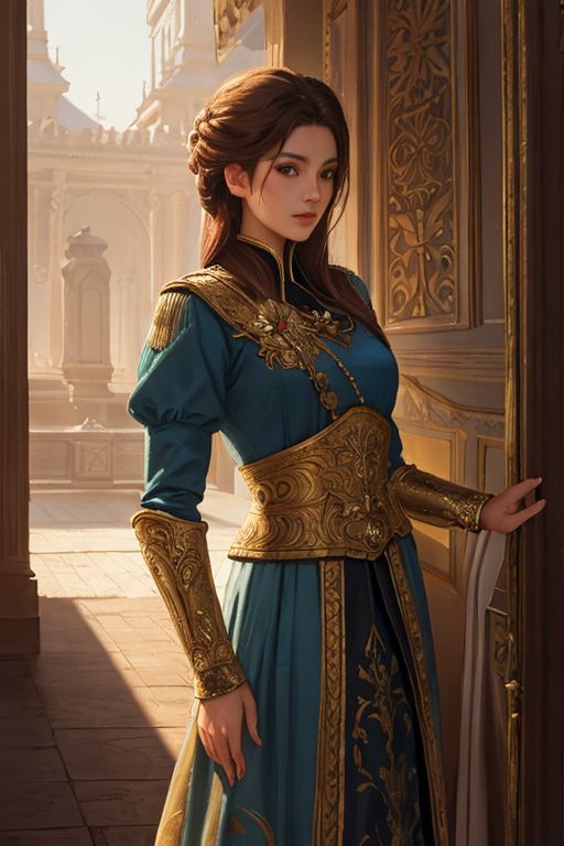 female Royal guard. Painting, vintage epic painting, sunlight natural lighting accent lighting, sharp complex picture intricate scenery trending on ArtStation post-processing intricate details