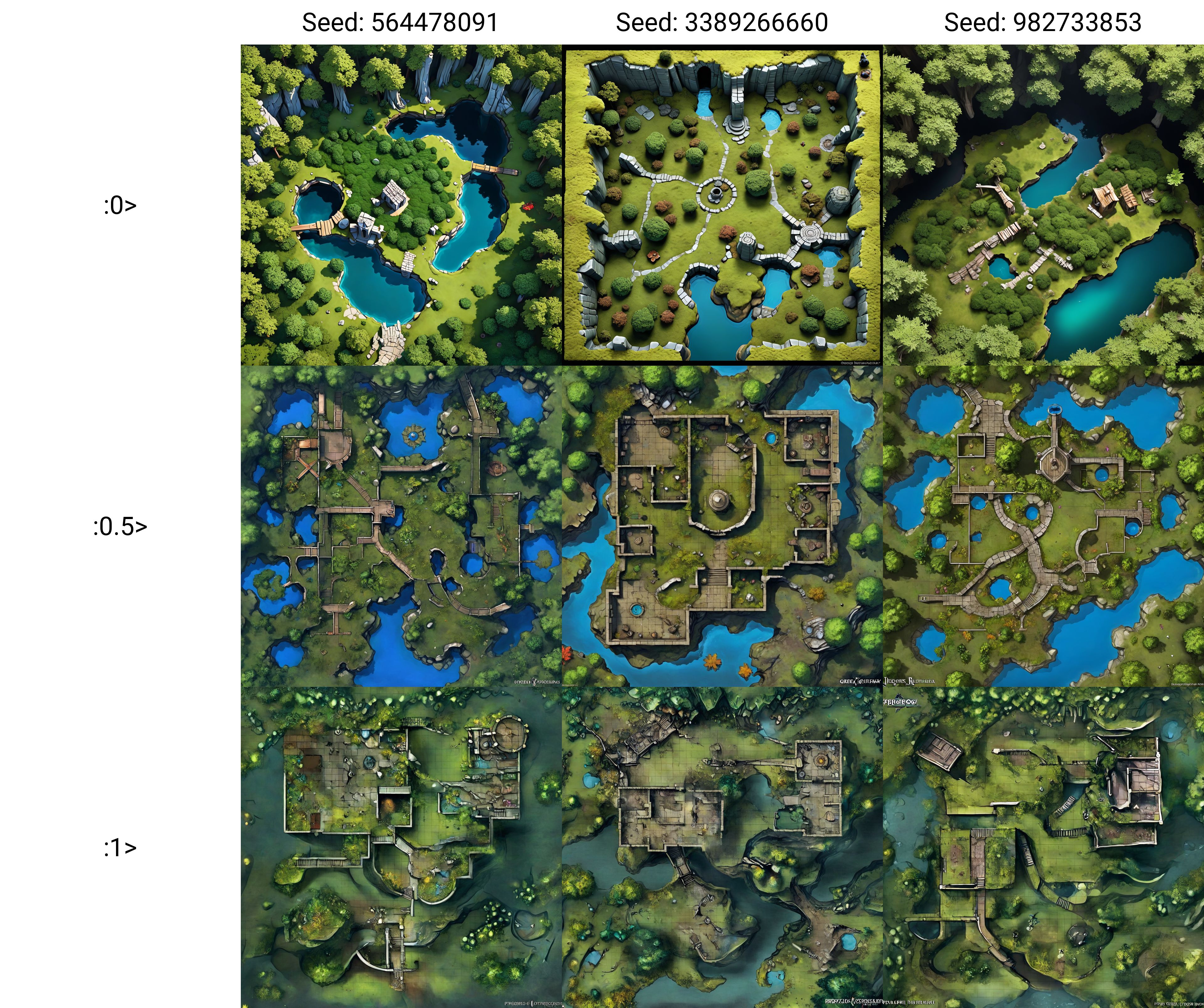 tabletop dungeon battlemap, green moss, lake, underground enchanted forest seen from above, statues, traps, broken cart, ancient stone walls, buildings, ruins fantasy digital painting, artstation, concept art, soft light, hdri, smooth, sharp focus, illustration, fantasy, intricate, elegant, highly detailed, D&D, matte painting, in the style of Greg Rutkowski and Alphonse Mucha and artemisia, 8k, highly detailed, jurgens, rutkowski, bouguereau, pastoral, rustic, georgic <lora:DD_Table_RPG:0>