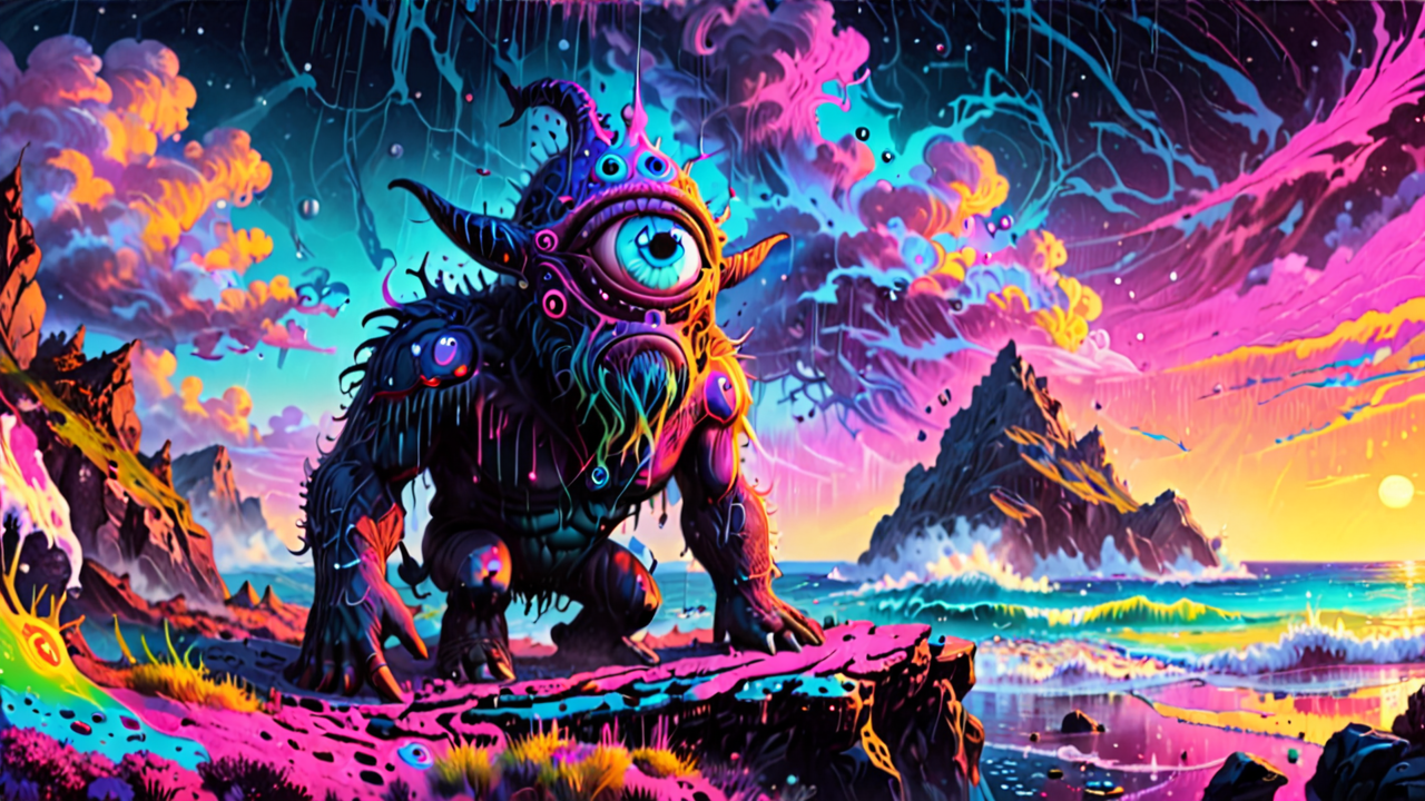 <lora:cyclops-sdxl:1>a cyclops person staring out to sea <lora:BadTrip_V1:1>b4dtr1p style outdoors