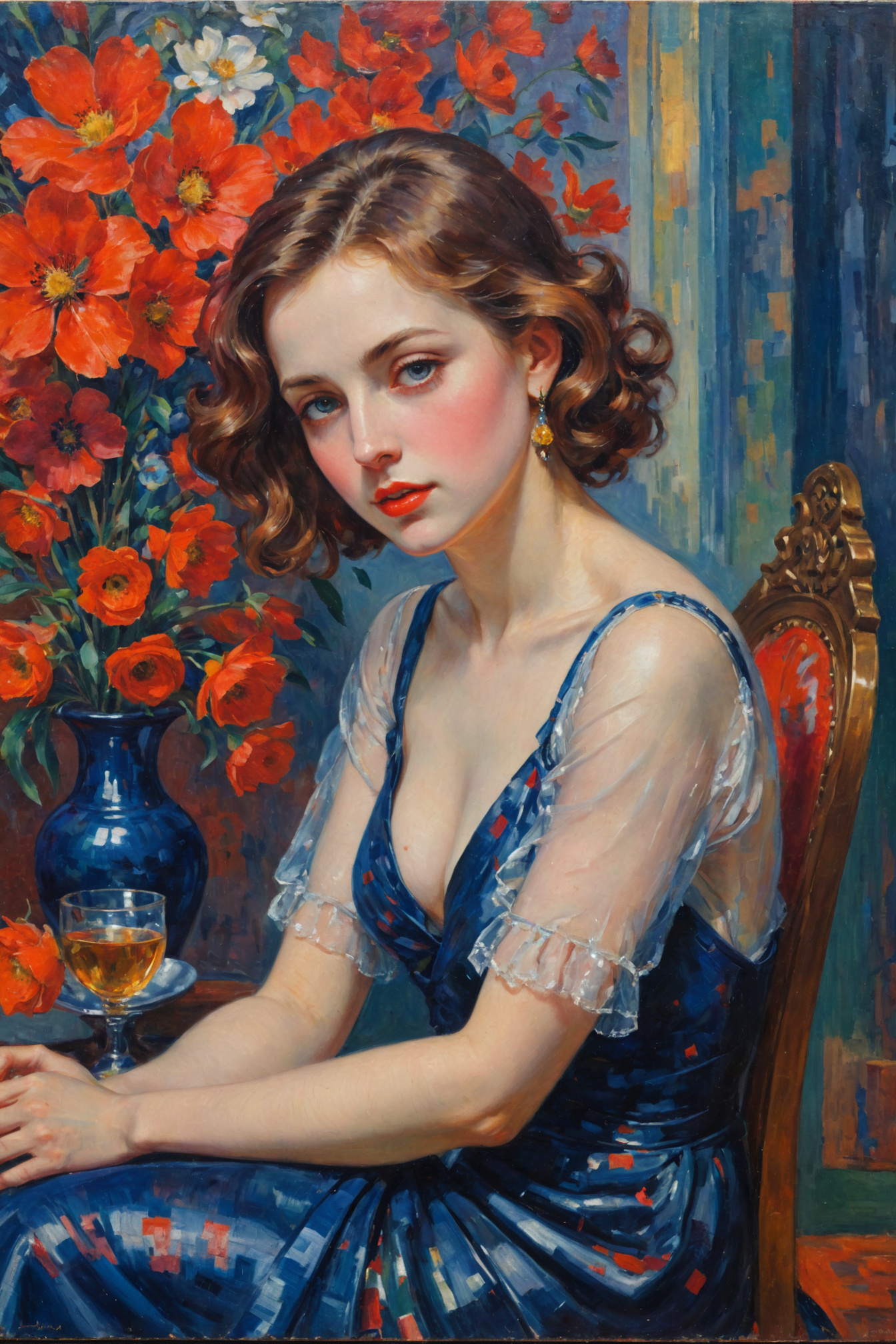 (exquisite masterpiece by Robert Antoine Pinchon and Jan Sluijters:1.2), oil on canvas, low key dazzling light, divine andeldritch and dynamic atmosphere, (mottled cobalt blue red shade and cherryred colors:0.1), finely crafted details, complete sharpness, depth blur, <lora:xl_more_art-full_v1:0.5> <lora:add-detail-xl:1.0>