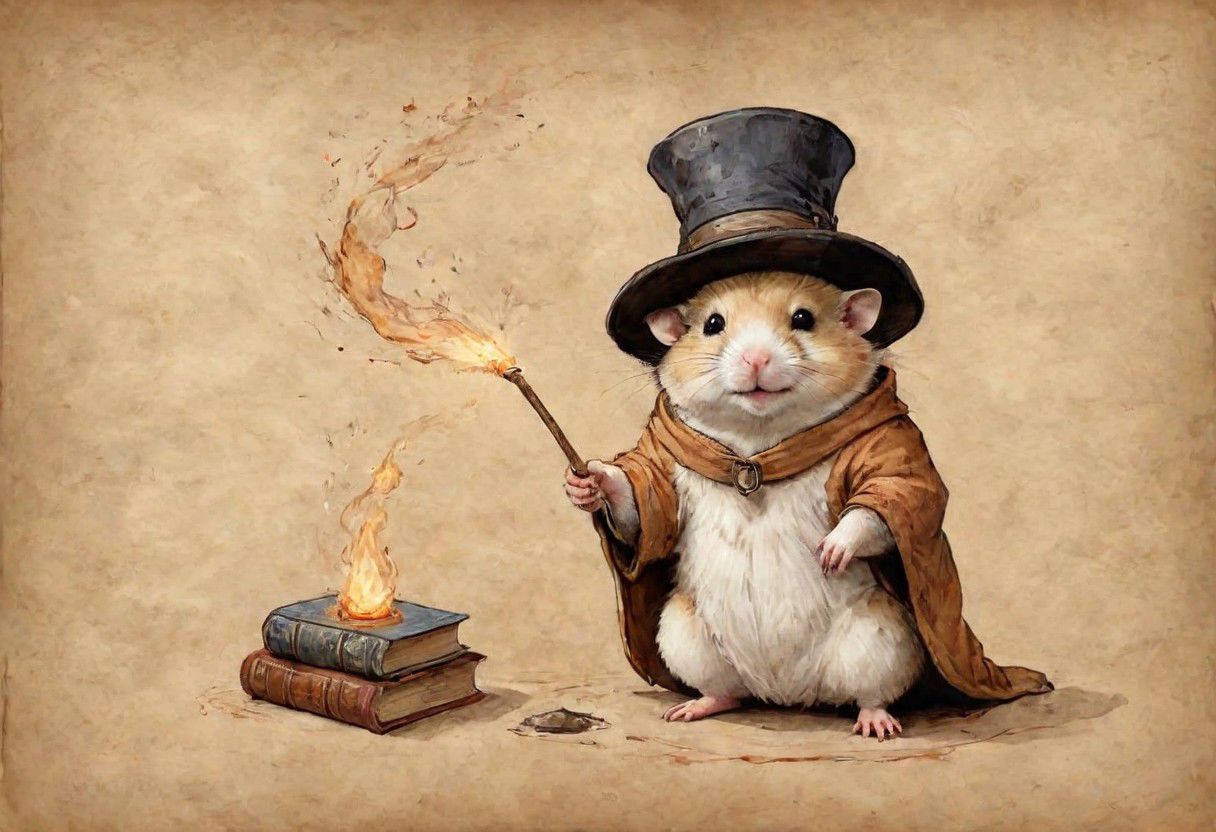 old book style ink illustration, on parchment, ink splashes, ink stains, ink smears, faded ink, chubby Dzungarian hamster in an adventurer's hat, (in the form of a gryphendor, conjures, deals with magic, magical sparks, magic), view from below, atmospheric dreamscape painting, dream scenery art, highly detailed visionary art, cgi style, vibrant oil painting, splash art, Cozy mystery, masterpiece 8k wallpapper, neoplasticism, Unreal Engine, dramatic lighting, coat, pantless, linquivera, liiv1, on parchment