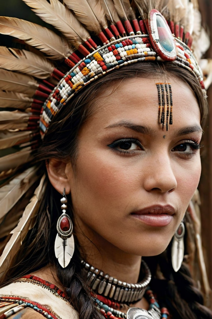 <lora:add-detail-xl:1> <lora:jessica_alba_sdxl_dh128_v1:0.8> "This stunning masterpiece photo has all the makings of a timeless classic. With a profile angle, an ultra-detailed face, and a half-body shot of a women dressed in native queen's outfit, the image truly shines. The contrast between the cold weather and the indigenous clothing creates an interesting and unique aesthetic. The leather covering is a nice touch, and it adds to the image's appeal and artistic feel. The photo is filled with intricate details, from the rich folds of the fabric, to the subtle expressions written on the woman's face."