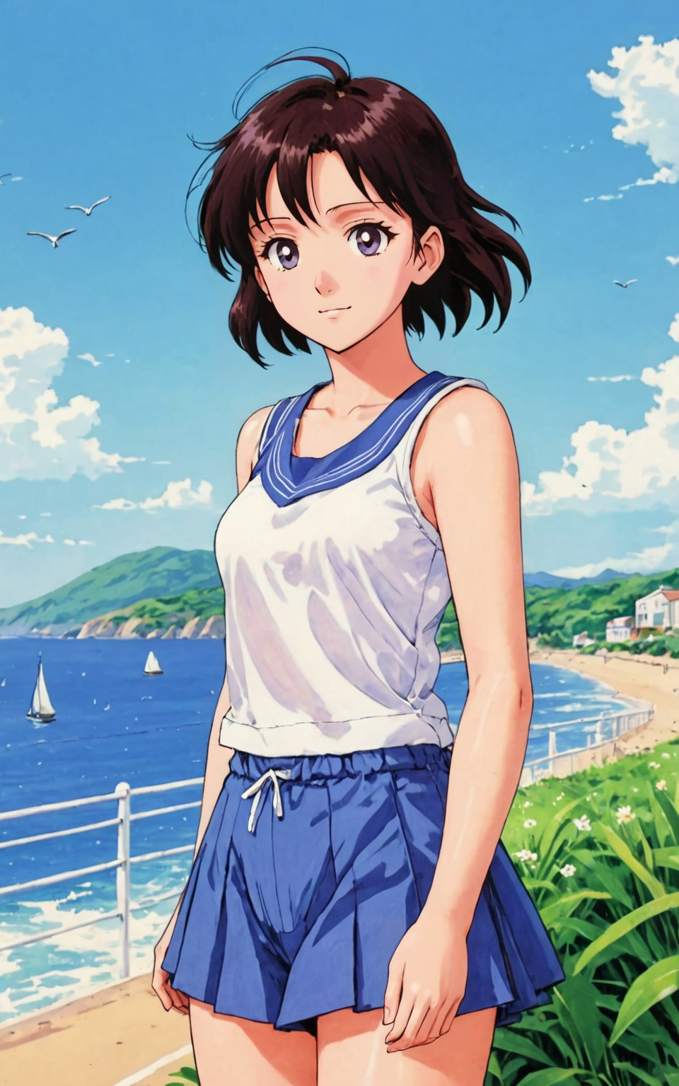 anime, illustration, sketch, girl, little smile, scenery, seaside, wind <lora:DauntlessMixSDXL:1> DauntlessXL Style