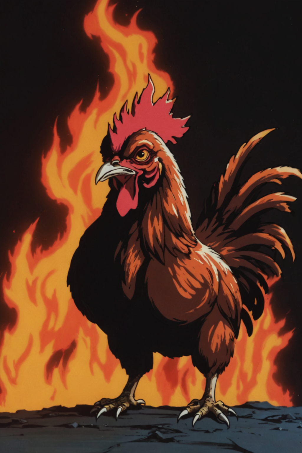 demonic chicken on fire <lora:xl_yoshiaki_kawajiri_v1:0.8>