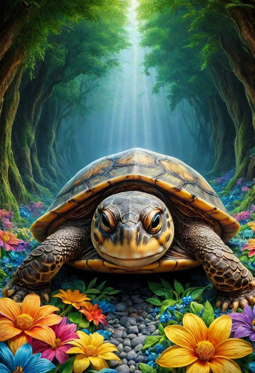 paper quilling art of ,art of an award-winning photo of a turtle laying in rainbow flowers looking over his shoulder:1.5, hyperrealistic, natural habitat, beautiful flowers, Intricate, delicate, curling, rolling, shaping, coiling, loops, 3D, dimensional, ornamental . intricate, delicate, curling, rolling, shaping, coiling, loops, 3D, dimensional, ornamental