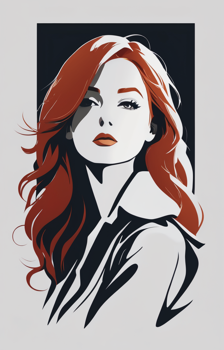 redhead girl, amazing body, casual pose, dressed, (((lineart))),((low detail)),(simple),high contrast,sharp,2 bit,(((centered vector graphic logo))),negative space,stencil,trending on dribbble