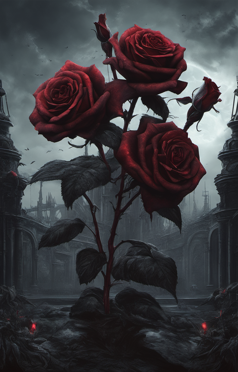 (dark magic), (grim), rose by Anato Finnstark, (intricate details), (hyperdetailed), 8k hdr, high detailed, lot of details, high quality, soft cinematic light, dramatic atmosphere, atmospheric perspective