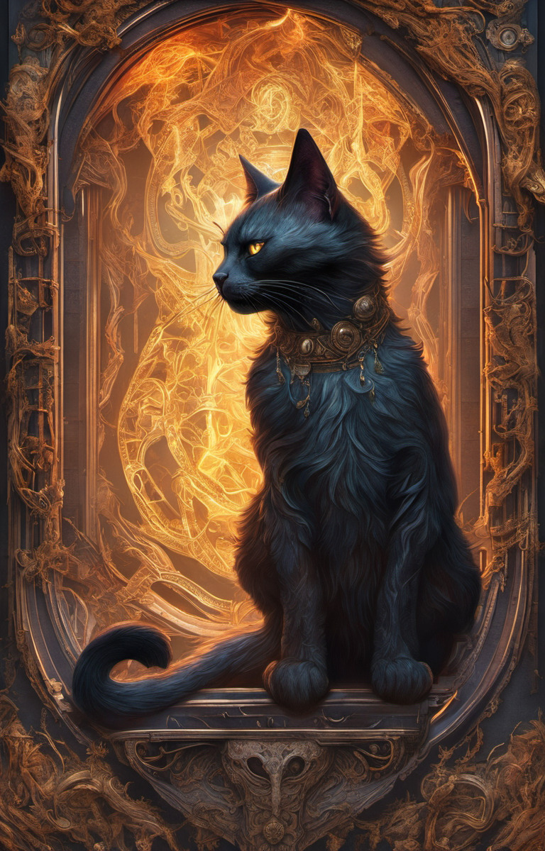 (dark magic), (grim), the black cat, dynamic pose ,(intricate details), (hyperdetailed), 8k hdr, high detailed, lot of details, high quality, soft cinematic light, dramatic atmosphere, atmospheric perspective