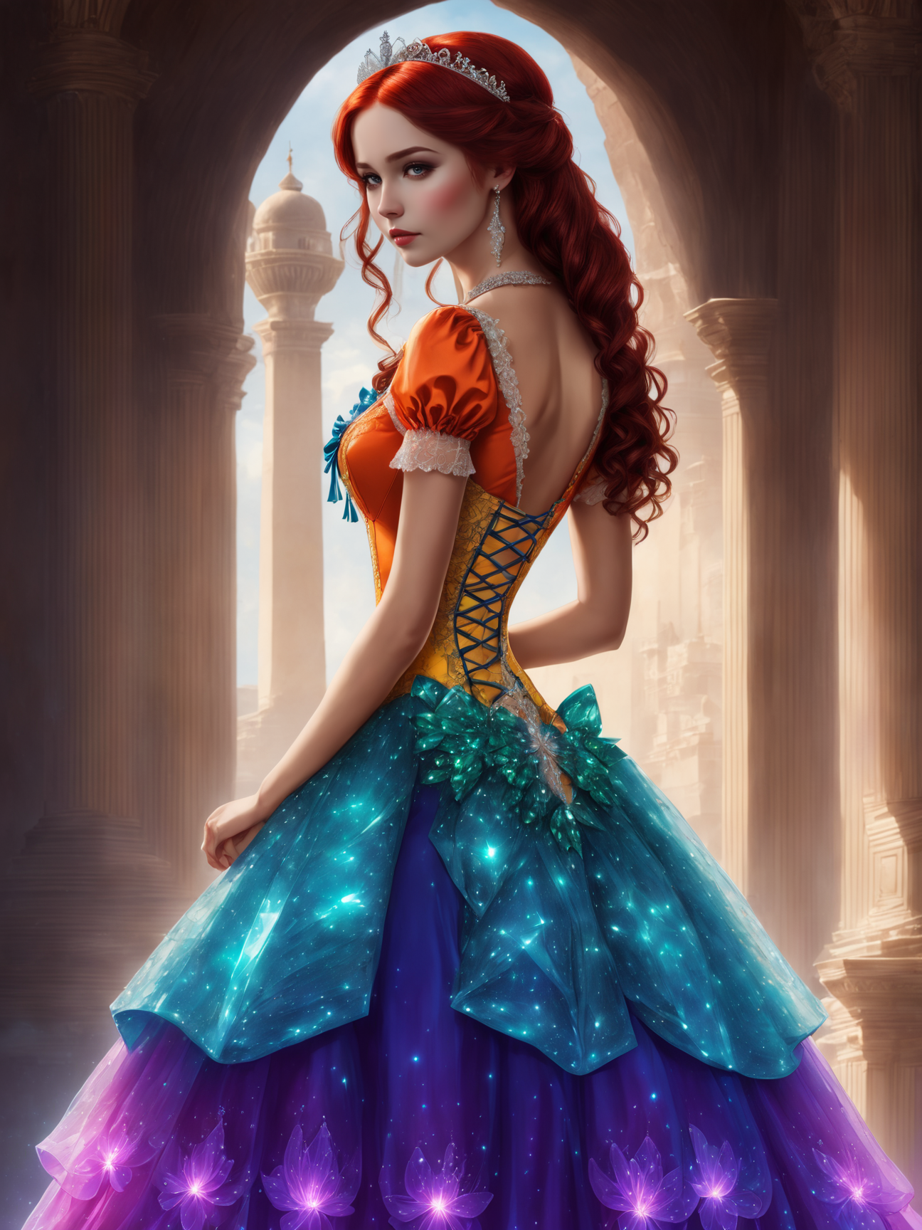 breathtaking photograph of a beautiful girl wearing a red princess dress in an alcove, <lora:xl_n15g_aio_clothing-2.0:0.8>, realistic, vibrant, vivid, full body, . award-winning, professional, highly detailed AND realistic red hair, AND orange victorian dress, AND yellow burlesque dress, AND green crystalline dress, AND blue crystalline dress, AND purple bioluminescent dress