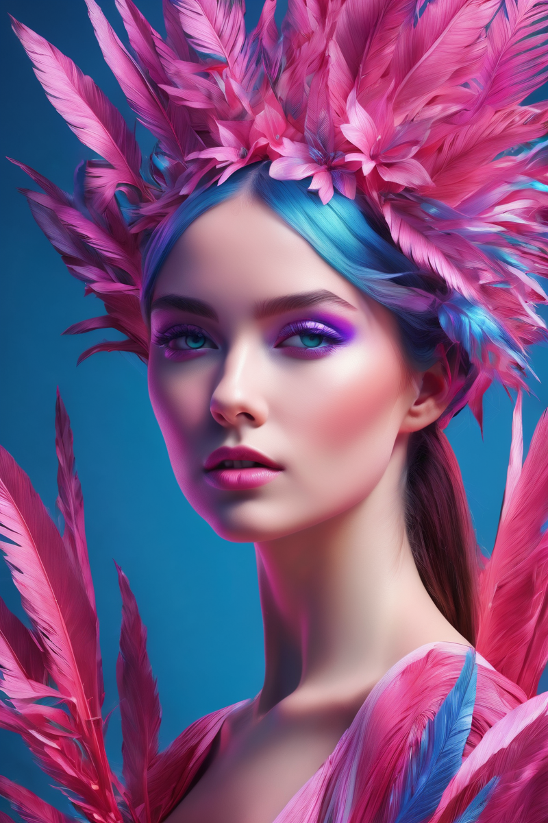 a colorful,animated girl with pink and blue grass,in the style of over,high contrast,tropical baroque,bio-art,light violet,cornelia parker,uhd image,botanical impressions,, best quality, masterpiece, highres, absurdres, incredibly absurdres, huge filesize, wallpaper, colorful,8K,RAW photo