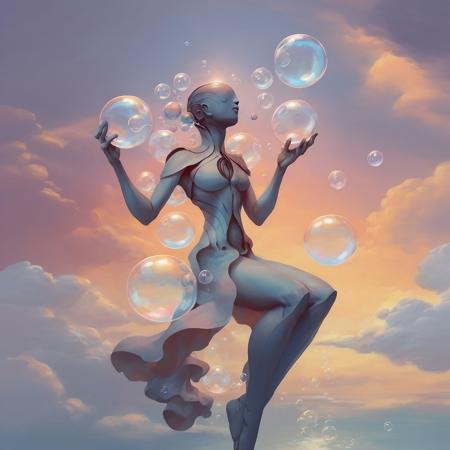 <lora:s3raph1mXL_v2:.8> s3raph1mxl abstract figure metallic reflective , earth leaves trees grass wood