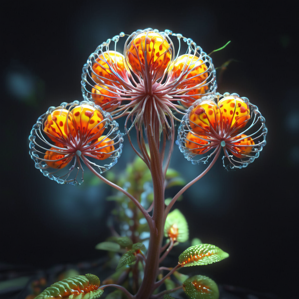 ((best quality)), ((masterpiece)), ((realistic,digital art)), (hyper detailed),teslapunkai DonMM4ch1n3W0rldXL Petite Bicolored Herbaceous-stemmed Erect plant, Entire Frond-like leaf, Parallel Venation, Clustered, Revolute Leaf Margin, Quinacridone Red Orange Catkin Irregular flower, Acuminate, Harmonious Chalazal Endosperm Seeds, Coarse, Ebracteolate, Rosette, , octane rendering, raytracing, volumetric lighting, Backlit,Rim Lighting, 8K, HDR, <lora:TeslaPunkAIXLv2:0.7> <lora:DonMM4ch1n3W0rldXL:0.65>