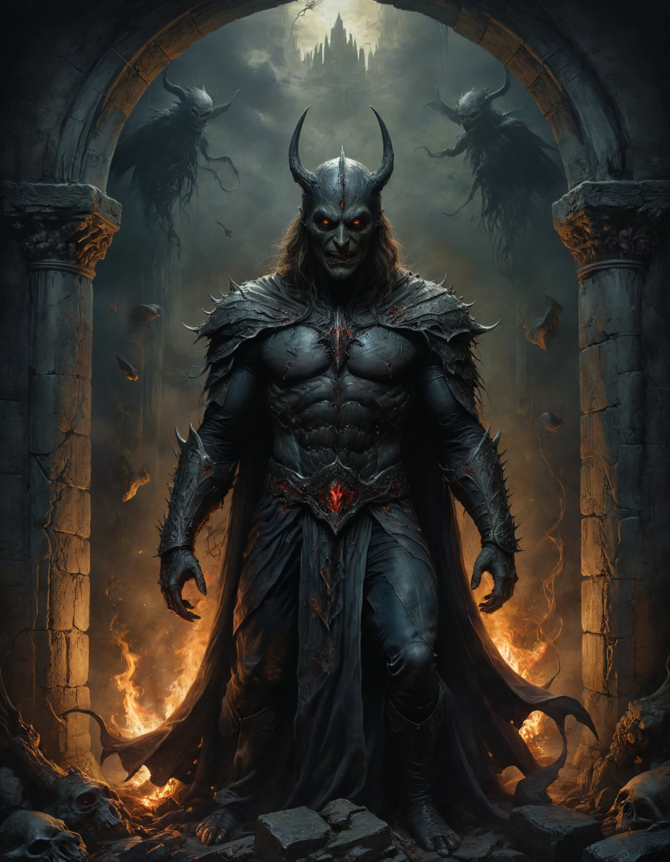 Dark lords, plotting in shadows, sinister, malevolent, in a fortress of darkness ([by Francesco Francavilla: by Brooke Shaden: 0.5]:1.3), Mythic realism, epic scale, meticulous detail, fantastical creatures (masterpiece, intricate details:1.2) <lora:xl_more_art-full_v1:0.5> <lora:add-detail-xl:1> <lora:RMSDXL_Creative:2> <lora:NicolaSamori:0.5>