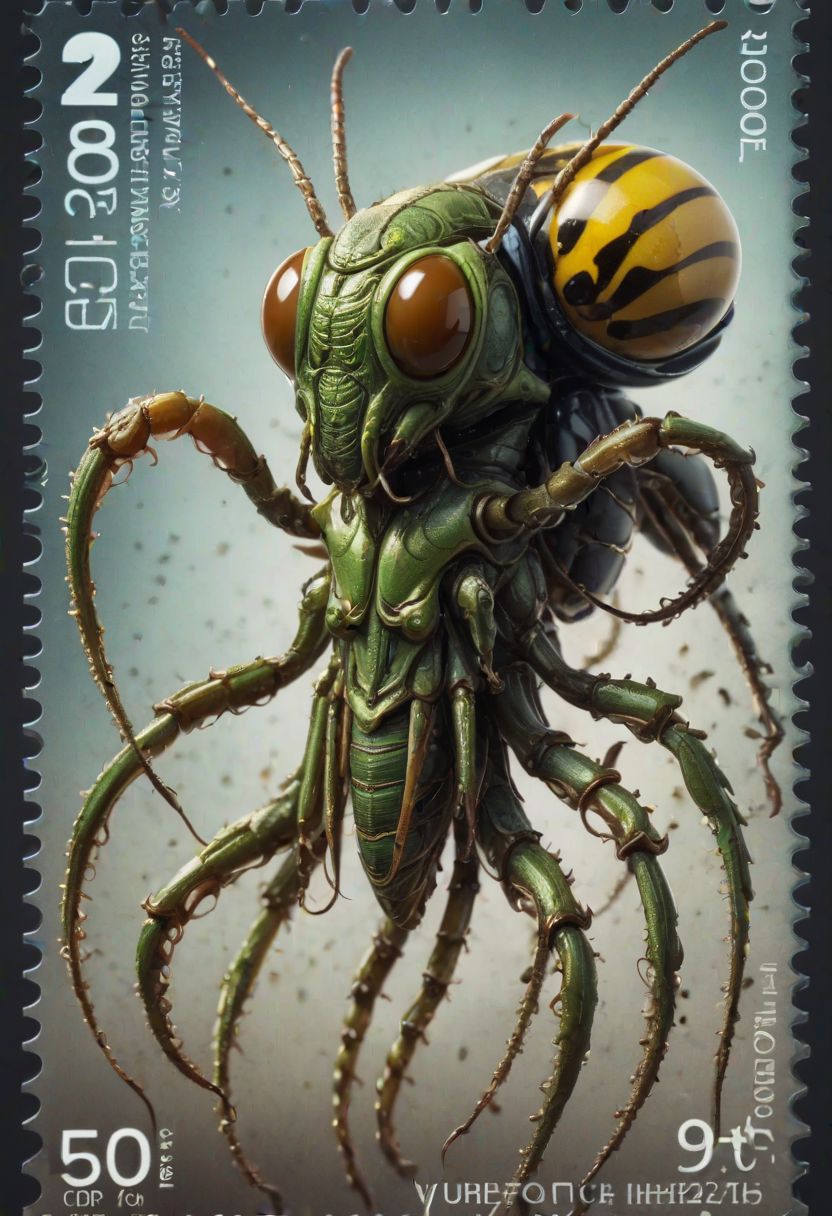 (genetic modification of humanoid with grasshopper:1.7), (tentacles body and neck:1.5), dirty liquid tentacles, huge bee eyes, whole figure, Centered-Shot, gothic, photorealistic, intricate, high detailed, volumetric lighting, cinematic lighting, 8k, octane render, lazy, abstract, ((uniform light background, matte background:1.4)), (picture in the form of a postage stamp:1.6)
