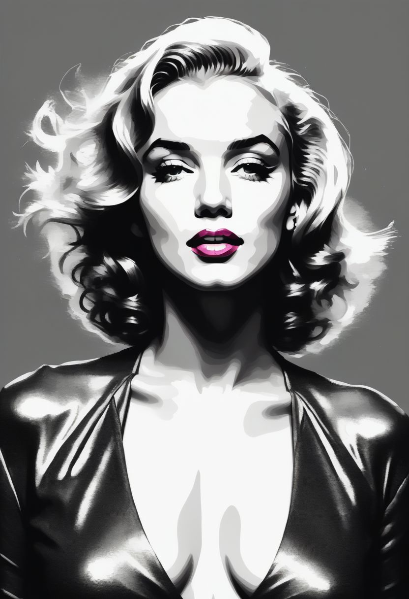 ((masterpiece)), ((Breathtaking)), ((Stunning)), ((Meticulous)), ((Magnificent)), ((Phenomenal)), ((Captivating)), A graceful and minimalist illustration of a beautiful seductive 18 years old Marilyn Monroe in a squiggly line drawing style, utilizing only a few strokes for a simplistic yet visually appealing design. The main lines are drawn in dark grey, while a subtle touch of pastel pink adds depth and warmth to the fox's detailing. The background is clean and simple, allowing the Girl to pose with its bold and stylish presence. The overall composition creates a sense of balance and harmony, capturing the essence of the subject in an elegant manner.