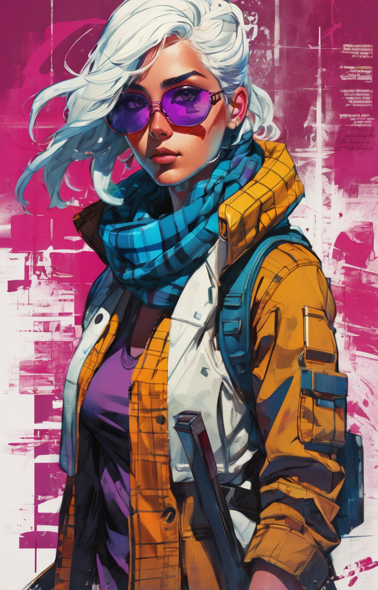 (dark shot:1.1), epic realistic, portrait of halo, sunglasses, blue eyes, tartan scarf, white hair by atey ghailan, by greg rutkowski, by greg tocchini, by james gilleard, by joe fenton, by kaethe butcher, gradient yellow, black, brown and magenta color scheme, grunge aesthetic!!! graffiti tag wall background, art by greg rutkowski and artgerm, soft cinematic light, adobe lightroom, photolab, hdr, intricate, highly detailed, (depth of field:1.4), faded, (neutral colors:1.2), (hdr:1.4), (muted colors:1.2), hyperdetailed, (artstation:1.4), cinematic, warm lights, dramatic light, (intricate details:1.1), complex background, (rutkowski:0.66), (teal and orange:0.4)
