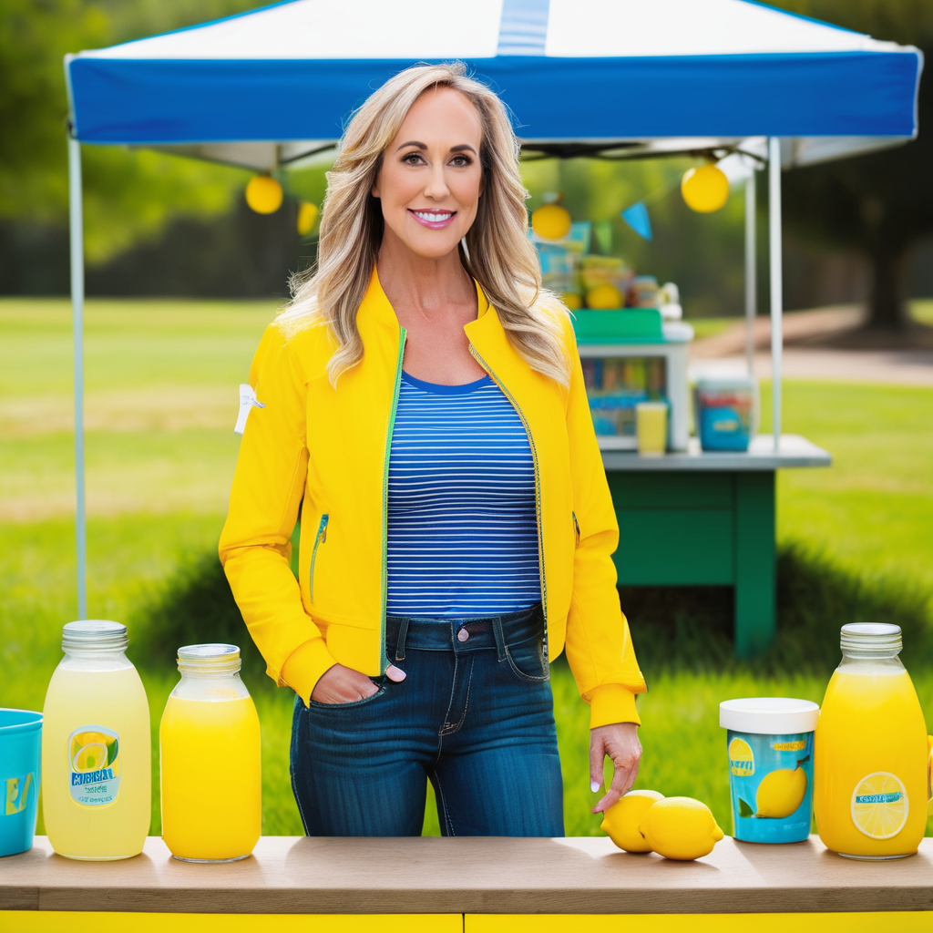 a photo of brandi love, ohwx woman, at a lemonade stand, wearing a jacket, best quality <lora:brandilove_SDXL:0.8>