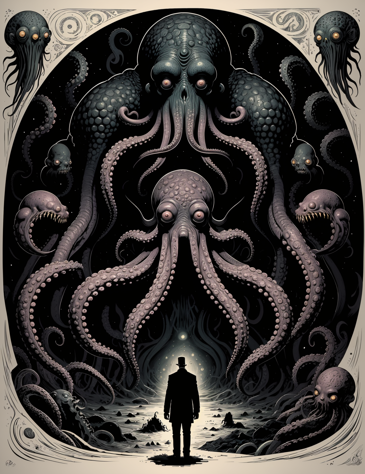 dark monster, octopus, 1man, hp_lovecraft_style, <lora:hp_lovecraft:1>