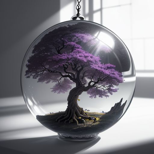 a majestic tree living inside a glass ball, intricate detail, ornate, best quality, hyperdetailed, absurdres, micro world, dramatic light, atmospheric, vivid detail, vibrant, unusual beauty, subsurface scatter, ambient occlusion, photorealistic, cg