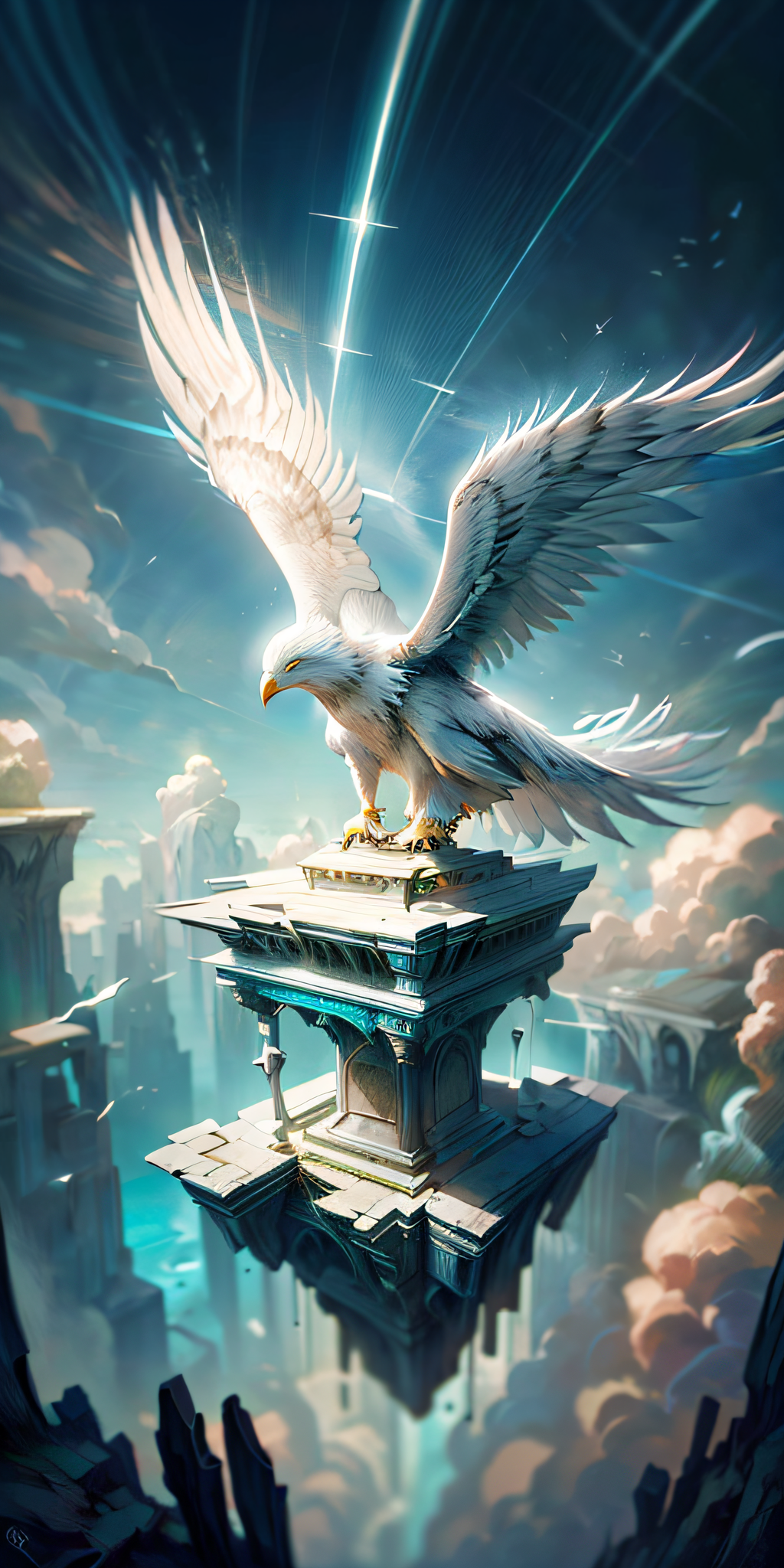 <lora:AngelicAI:.9> AngelicAI eagle, rocks below, <lora:add_detail:1>
