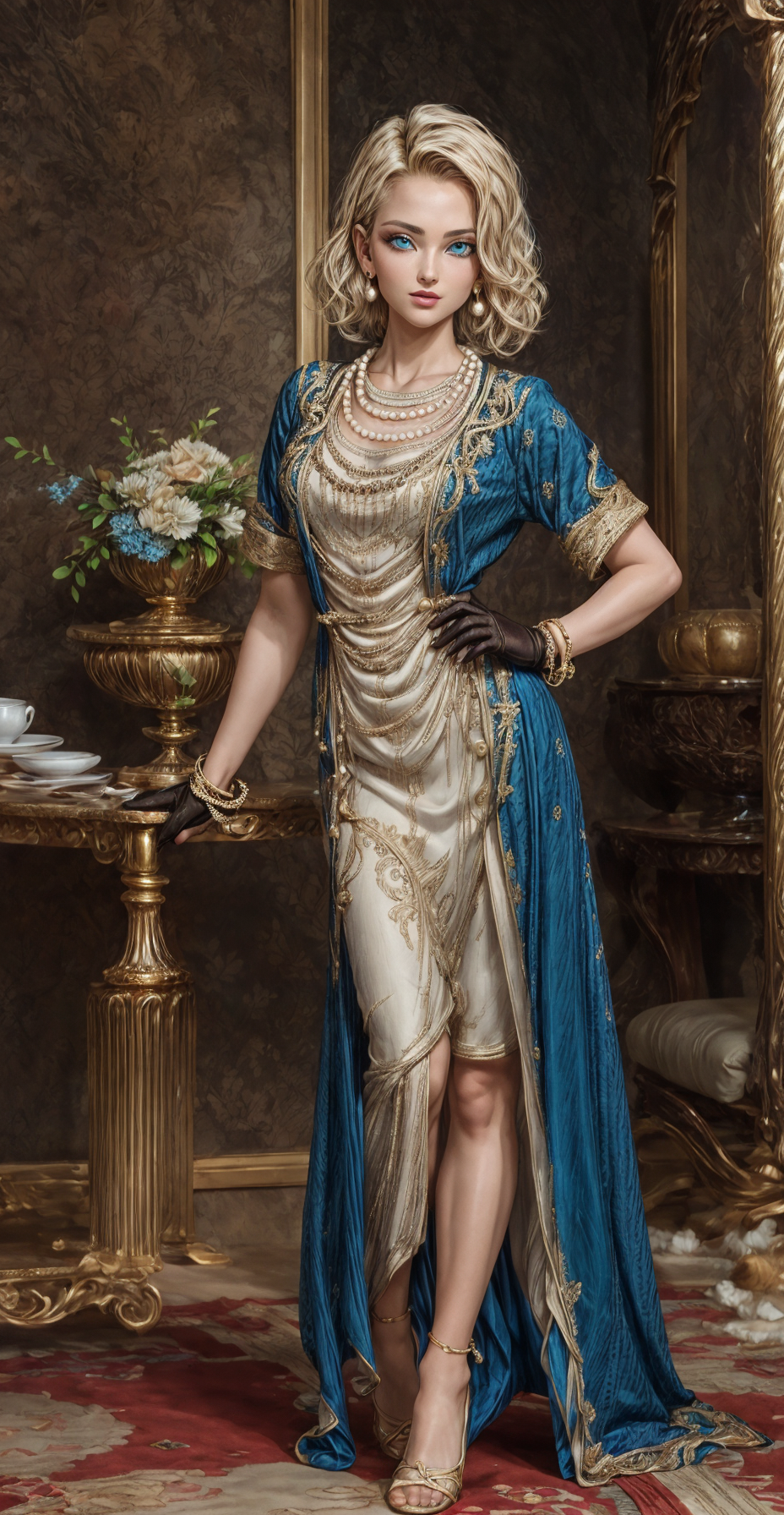 (masterpiece, sidelighting, finely detailed beautiful eyes: 1.2), intricate, elegant, highly detailed, majestic, woman wearing a Moroccan caftan, standing, high quality art, high resolution, high definition, (full body focus:1.1) <lora:Moroccan_Caftan:0.6> caftan, moroccan caftan, embroidery, fabric, wearing <lora:opentoeNYX:1> opentoenyx, with heels, ankle, feet, toenails <lora:more_details:1.2> <lora:character_android 18_dragon ball z epoch2:0.9> android18_dbz, 1girl, blonde hair, blue eyes, jewelry,necklace, pearl necklace, earrings, gloves