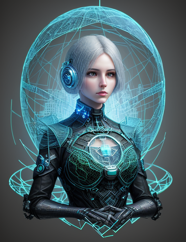 woman, clothed, Mosaic Art sci-fi Mellow Wireframe Rendering Dunia Engine Realist Double Exposure Rococo