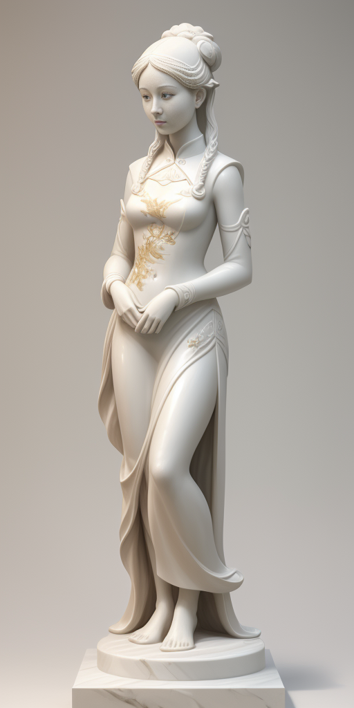 white marble sculpture of girl, illustration, concept art, chinese clothes, best quality, masterpiece