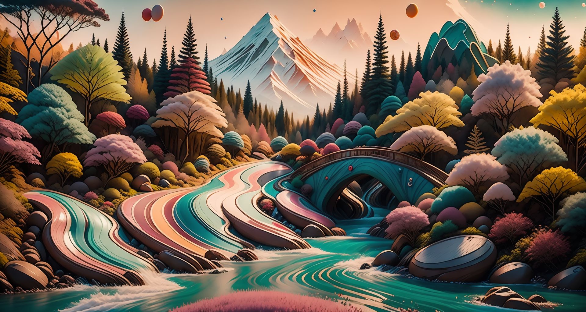 candyland, fantasy, house with trees, illustration, full background, colorful, vivid, w00d candy mountains, syrup river <lora:Candyland:0.8> <lyco:woodenLycoV2:1> <lora:ink-0.1-3-b28-bf16-D128-A1-1-ep64-768-DAdaptation-cosine:1>