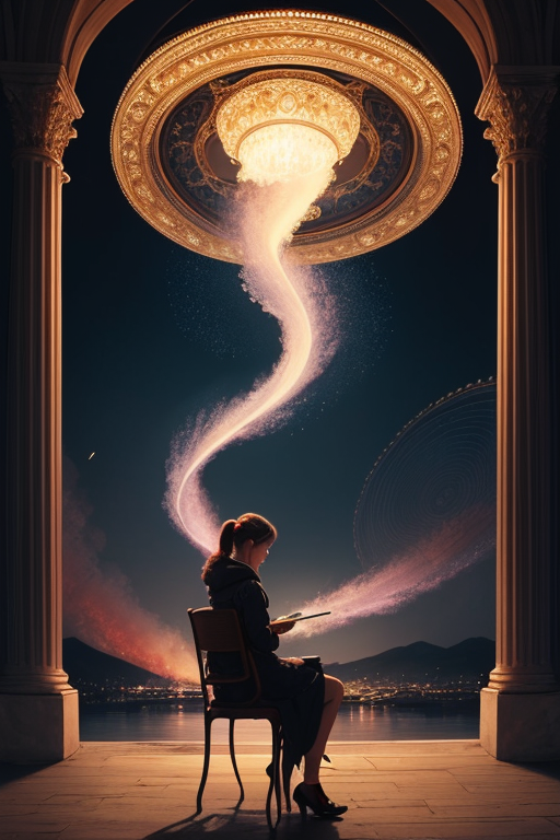 the actual subject of the image will need to be determined by the AI, I decided as I sat down, trying to generate an image that matches my thoughts, no creative thoughts arrive but do I just relax and make images of pretty women with crisp and detailed features? Those images have been done before, the quality of the images is contextual to the subject, excellent subject matter equals excellent quality, I think the image should be bright and whimsical, fantastical, to inspire and thrill the soul, but should also have some darker undertones, to imply nothing is what it seems, creativity swirls and eddies and darts around my uninspired mind as a vortex of colors and light which I cannot seem to grasp, I had creativity once, but I sacrificed it to precision, high resolution, crisp ambient lighting, and adept use of perspective and composition which the silicon artist possesses in abundance