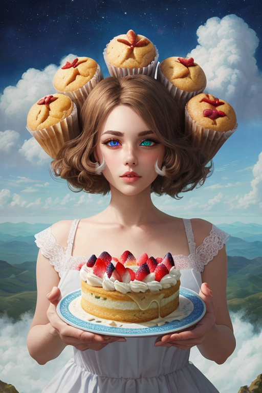 Superior quality, illustration, a surrealistic realm where a woman's mastery of baking becomes a catalyst for profound change in the world. Her very presence defies conventional reality as she merges seamlessly with the whimsical essence of her craft, surrealist painting that transcends the boundaries of logic and invites viewers into a dreamlike state. The forms are distorted and fantastical, blurring the lines between the woman and her extraordinary baked creations. Each brushstroke captures the essence of her unconventional spirit and the surreal journey she undertakes, (in the style of Salvador Dali, Ren Magritte), a world where the laws of physics bend to the woman's will. Gravity defies as cakes float mid-air, and pastries transform into whimsical creatures. The ambiance is imbued with a sense of wonder and possibility, as the surreal environment reflects the profound impact of her innovative baking techniques, high-resolution surrealist masterpiece, where every stroke of the brush evokes intrigue and awe. From the enchanting details of the woman's ethereal presence to the surreal elements that defy logic, the artwork beckons viewers to explore the transformative power of baking through a surreal lens