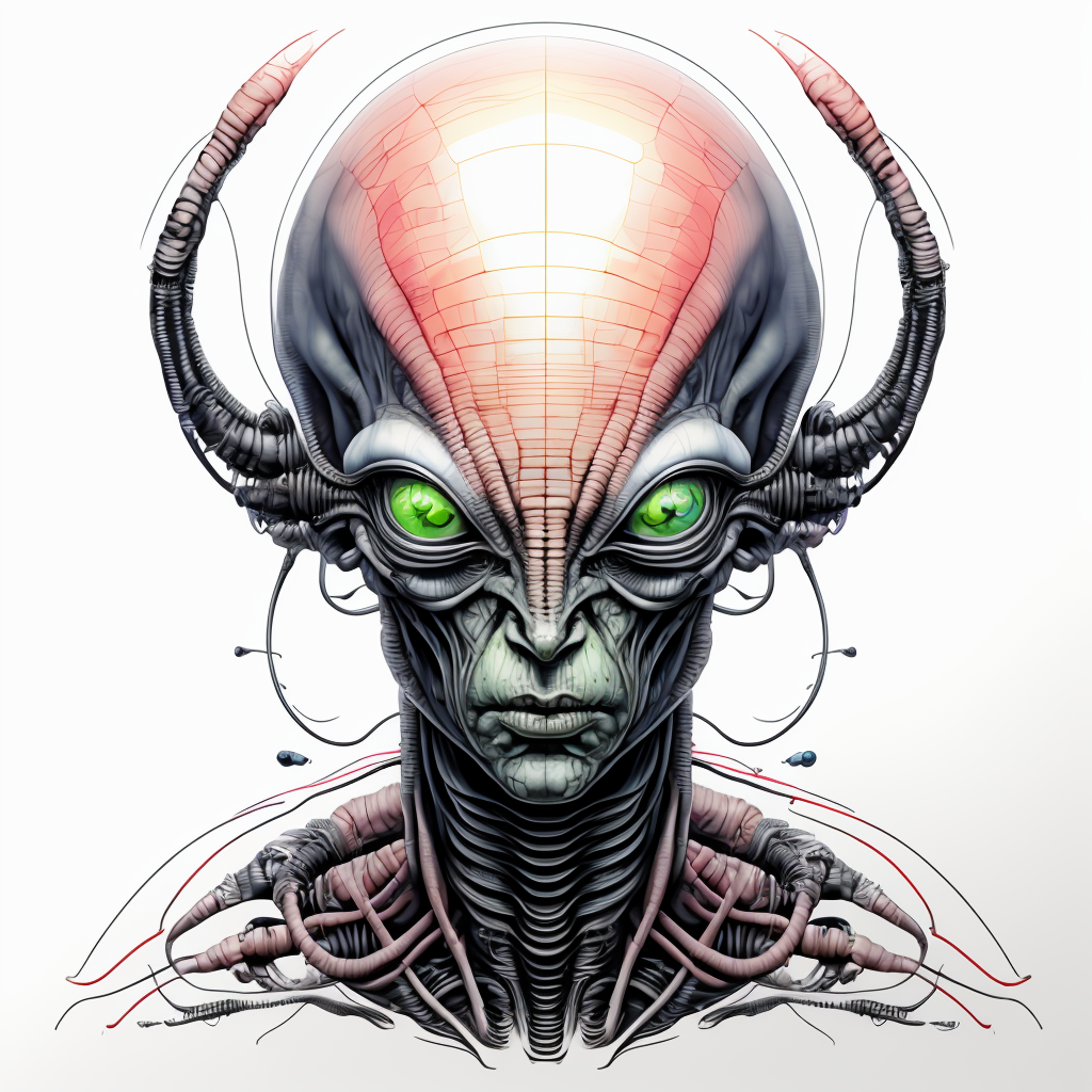 <lora:xk3mt1ks:0.9> alien portrait in the style of xk3mt1ks over white background