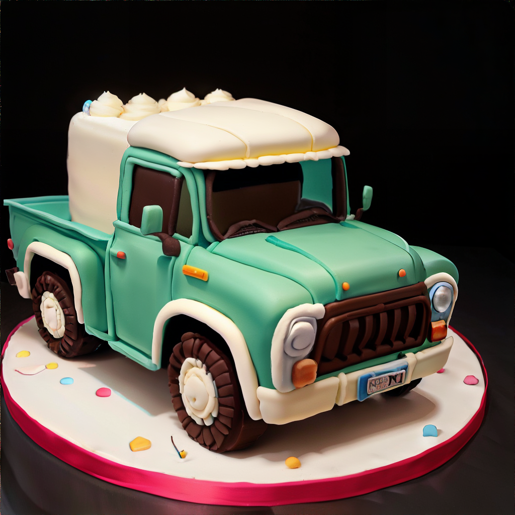 <lora:cakestyle:0.5> cakestyle, cake in the shape of a Crew cab truck