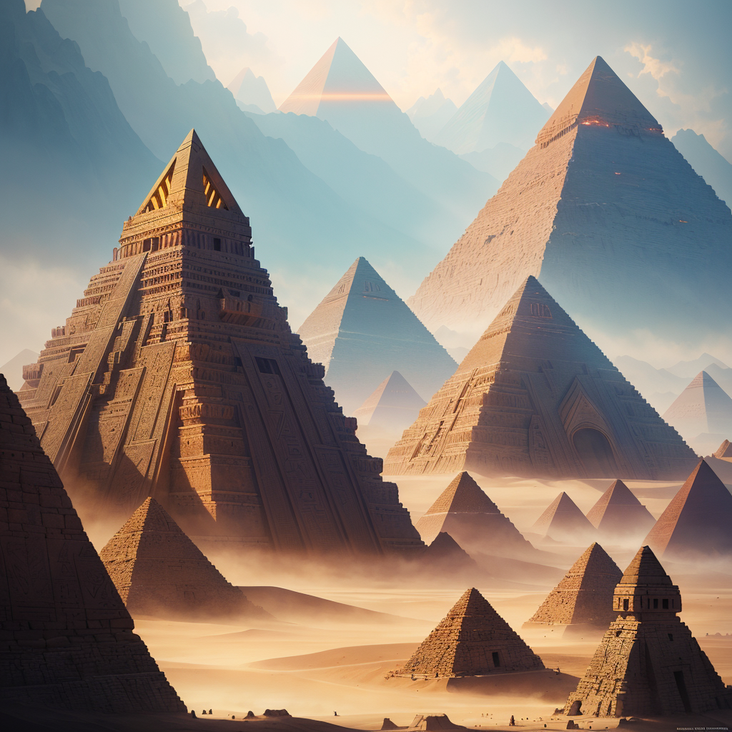 still life around ugly landscape.pyramids with alien structures best quality)), ((masterpiece)), (detailed)(fantasy illustration:1.3), enchanting gaze fantasy, landscape, , soft, pretty visuals, aesthetic, artstation, shadow effect, insanely detailed and intricate, highly detailed, artstation by wlop, by artgerm, art by tom bagshaw, atey ghailan, andrew atroshenko, stanley artgerm. ,16 k, ultra realistic, octane render, volumetric lighting, insanely detailed and intricate, photorealistic, highly detailed, artstation by wlop, by artgerm.