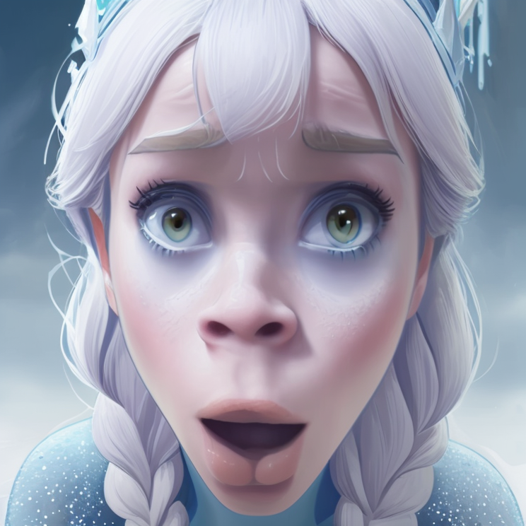 <lora:mahonest-01:1.2>, myhonest reaction, snow_queen_elsa, disney princess elsa with her hands on her head, looking straight at the camera, close-up shot
