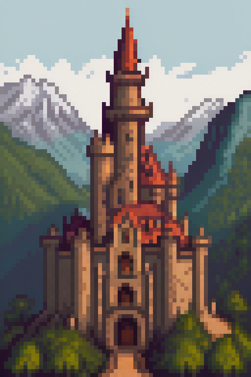 A forbidden castle high up in the mountains, pixel art, (intricate details:1.12), hdr, (intricate details, hyperdetailed:1.15), (natural skin texture, hyperrealism, soft light, sharp:1.2), game art, key visual, surreal <lora:svportrait64-v1:0.9>